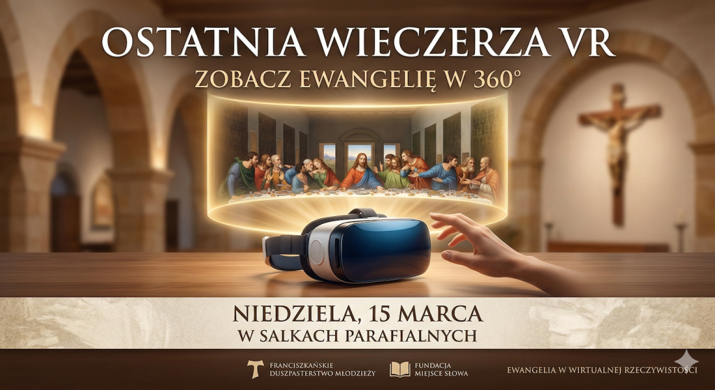 zapraszamy Was na wyjątkowe wydarzenie w ramach projektu „Ewangelia w wirtualnej rzeczywistości”. Dzięki dedykowanym okularom VR i obrazowi w 360 stopniach będziecie mogli poczuć się tak, jakbyście byli fizycznie obecni w Wieczerniku, siedząc przy jednym stole z Panem Jezusem i Apostołami. To niezwykle poruszające doświadczenie!