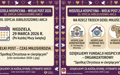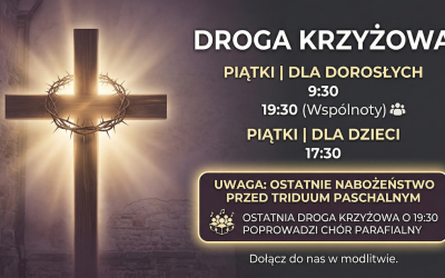Ogłoszenia duszpasterskie 29.03.-05.04.2026r. W niedzielę (29.03.2026r.) uroczyste poświęcenie palm jest o godzinie 10.00 na Kalwarii za kościołem. Parafialny Zespół Caritas rozprowadza palmy przed każdą Mszą świętą (począwszy od sobotniej, wieczornej Mszy świętej) Gorzkie... Czytaj więcej →